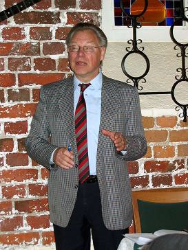 Sivun kuva: VTM Kauko Kaiju johti puhetta KOTAn kuukausilounailla seitsemän vuoden ajan (1998 - 2004). Kuva tilaisuudesta 28.9.2004. Seuran kevätkokous 14.4.2005 nimitti Kaijun KOTAn ensimmäiseksi kunniajäseneksi.